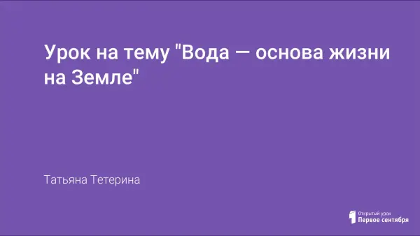 Цели: сформировать понятие о воде как веществе с уникальными физико-химическими свойствами, рассмотреть её значение для всего живого на Земле, развивать понятие о здоровом образе жизни и экологической безопасности, т.е. понятие культуры здоровья, воспитывать бережное отношение к водным запасам.