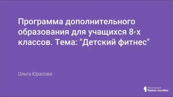 Достижения и разработки российской фитнес-индустрии приемлемы для учащихся общеобразовательных учреждений с точки зрения оздоровления и укрепления здоровья. В целях реализации учебного плана разработана данная программа дополнительного образования «Детский фитнес» (34 часа). Программа может быть использована учителями физической культуры, педагогами-организаторами по спортивной работе, инструкторами по фитнесу.