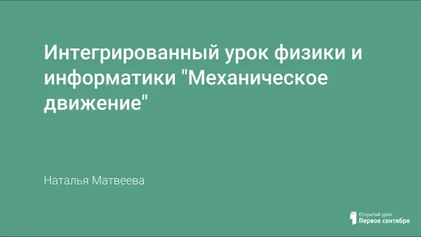 Интегрированный урок физики и информатики c использованием информационных технологий. Посвящен теме «Механическое движение». Ученики учатся решать задачи, обобщать изученный материал, анализировать, объяснять явления и процессы.