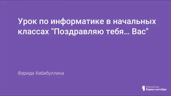 С помощью компьютера можно писать, рисовать, слушать музыку и делать многое другое. На уроке информатики (начальные классы) в 4-м классе по теме: "Поздравляю тебя, ...Вас" в процессе обучения используется программа Microsoft Power Point, создание слайдов и анимации. Урок проводится в интересной форме с учетом возрастных особенностей учащихся и уровня их знаний. Основное внимание направлено на развитие внимания и памяти, логического и образного мышления, творческого воображения.