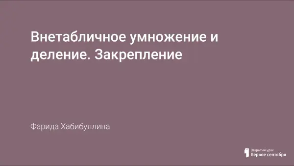 Урок проводится после изучения темы "Внетабличное умножение и деление". Цель урока: закрепить знания, умения и навыки полученные на уроках; развивать внимание, память познавательную активность учащихся; развивать интерес к предмету через игровую форму работы, повышать активность учащихся; воспитывать чувство ответственности за качество и результат выполняемой работы, а также чувство взаимопомощи. На уроке использована коллективная, парная, индивидуальная форма работы.