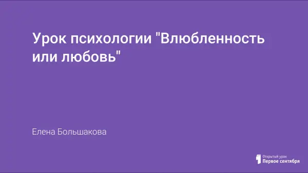Урок направлен на развитие умения различать понятия "любовь" и "влюбленность", на актуализацию знаний учащихся по психологии межличностных взаимоотношений, на совершенствование навыков самопознания и самоанализа. Учащиеся знакомятся с определением настоящей любви, учатся разбираться в ловушках влюблённости. На уроке использованы различные технические средства: презентация, аудио- и видеоматериалы.
