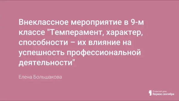 Учёт индивидуальных личностных особенностей (темперамента, характера, способностей) имеет большое значение в профессиональной деятельности, влияет на эффективность становления профессионализма в будущем. Мероприятие направлено на оптимизацию учета индивидуальных личностных особенностей, активизацию процесса самопознания.