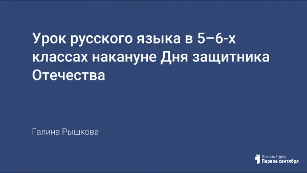 Урок русского языка в 5–6-х классах накануне Дня Защитника Отечества превращается в урок-праздник, на котором проходят поздравления мальчиков, проводится конкурс "А ну-ка, парни", и параллельно повторяется прямая речь и морфологический разбор имени существительного.