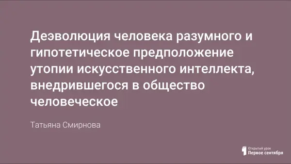 Деэволюция человека разумного и гипотетическое предположение утопии искусственного интеллекта, внедрившегося в общество человеческое