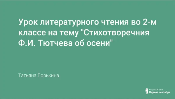 Итогом урока стал материал, подобранный учителем о родном крае, где дети увидели красоту осенних мотивов в своем городе; потом поделились впечатлениями об осенней экскурсии. Сценарий данного урока является авторским. К нему учителем созданы ЦОРы, составлена интересная и яркая презентация. Все это может оказать большую помощь учителям при проведении урока по творчеству Ф.И. Тютчева.