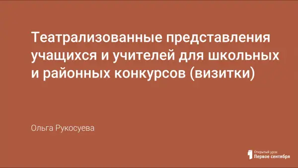 Я представляю мини-сценарии театрализованных визиток, которые можно использовать при подготовке детей и педагогов к конкурсам различного уровня. Живой язык театра плюс дополнительный видеоряд.