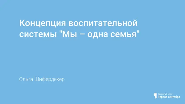 Без четкого взаимодействия школы и семьи в учебно-воспитательном процессе невозможно повысить успеваемость и качество обучения. Данная воспитательная система предназначена для начальной школы и направлена на налаживание тесного сотрудничества школы с семьёй, привлечение семьи к активному участию в делах школы.