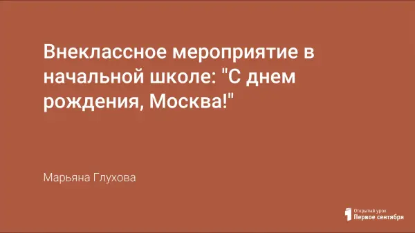 Мероприятие посвящено Дню города Москвы. Для участия в нем необходимо привлечь участников фольклорного ансамбля школы и танцевального народного коллектива. Песни о Москве учащиеся могут исполнить на усмотрение учителя музыки. Желательно на классных часах провести предварительную работу. Для участников праздника необходимы стилизованные костюмы.