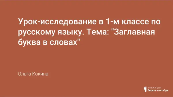 Урок-исследование в 1-м классе по русскому языку. Тема: "Заглавная буква в словах"
