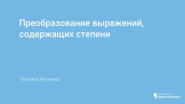 На уроке поставлены следующие задачи: отработать умение и навыки применения свойств степеней, решение задач обобщающего характера, контроль знаний, развитие творческих способностей и логического мышления у учащихся, формирование навыков cамоконтроля. Это достигается такими видами работы как: устный счет; применения индивидуального подхода (карточки с образцом решения); элементы самоконтроля, повторения; самостоятельной деятельности.