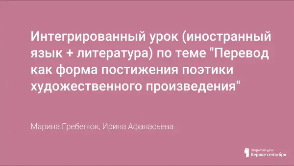 Интегрированный урок (иностранный язык + литература) по теме "Перевод как форма постижения поэтики художественного произведения"