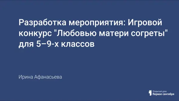 Игровой конкурс «Любовью матери согреты» для 5–9-х классов посвящен Дню матери. При подготовке данного мероприятия были использованы материалы, напечатанные в изданиях «Педсовет», «Последний звонок», «Воспитание», а также творчество и фантазия моих помощников-аниматоров – учащихся 10-го класса.