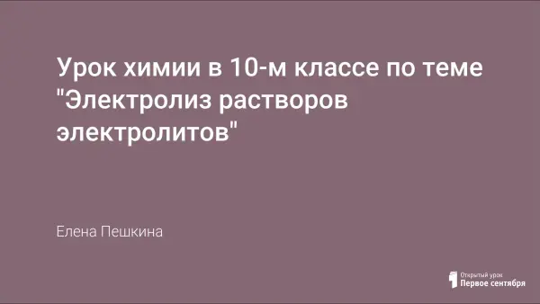 При проведении урока применяются мультимедийные средства обучения. Процесс обучения носит проблемный характер. В ходе урока решается проблема получения кислорода на борту космического корабля (по книге Г.Гаррисона «Космический врач»). Ученики решают расчетную задачу на законы Фарадея, выступают с докладом по теме «Применение электролиза», разгадывают кроссворд.