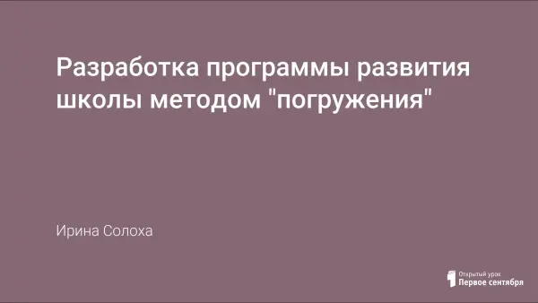 При составлении программы развития (или любого значимого для школы документа) важно сформировать у каждого члена педагогического коллектива общее представление и вовлечь в процесс работы каждого. Предлагаются "погружения", содержание и форма которых были придуманы специально для работы над программой развития (разумеется, на отдельных её этапах использованы материалы других авторов).