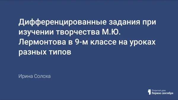 В данной статье представлен опыт дифференцированного обучения на уроках литературы на примере изучения творчества М.Ю. Лермонтова в 9-м классе. Представлены технологические карты пяти уроков темы «М.Ю. Лермонтов»: вводный урок, урок изучения лирики, урок анализа лирических произведений, урок анализа эпического произведения, урок сопоставительного анализа.