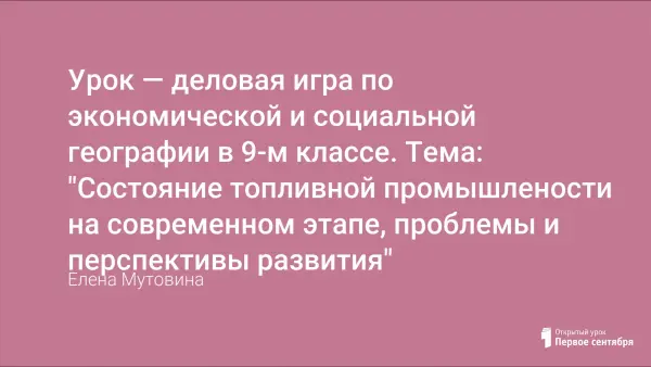 Представлен конспект урока-деловой игры по экономической и социальной географии России в 9-м классе по теме: "Состояние топливной промышленности на современном этапе экономического развития, проблемы и перспективы".