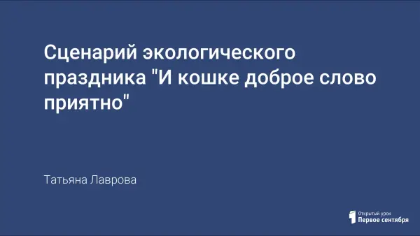 Экологический праздник — одна из форм экологического образования, представляющая собой совокупность экологических мероприятий, приуроченных к определенной дате. Данное мероприятие является завершающим этапом в реализации коллективного экологического проекта «Кошкин дом», целью которого было расширение знаний учащихся о разнообразном мире кошек, воспитание любви и бережного отношения к домашним питомцам.