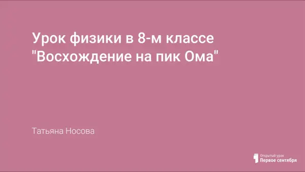 Урок физики в 8-м классе на тему «Восхождение на пик Ома» проводится в конце четверти или после изучения большого раздела программы, а также в конце учебного года. Очень важным является выбор формы проведения. Это может быть весёлое путешествие, КВН и т.д. Такие занятия развивают сообразительность, логическое мышление, укрепляют интерес к родному языку, воспитывают чувство ответственности, доброжелательность.