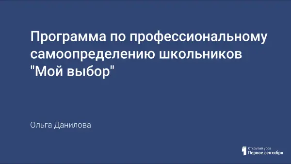 Выбор своего профессионального будущего выступает как неотъемлемая часть учебно-воспитательного процесса в школе. В статье представлена программа по профессиональному самоопределению учащихся 1–11-х классов. Подготовка учащихся к самостоятельной трудовой деятельности через комплексное оказание содействия процессу профессионального и личностного самоопределения.