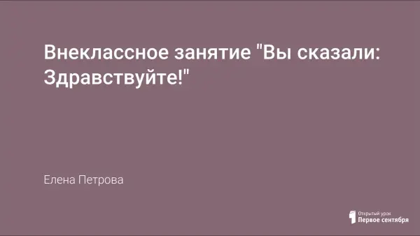 Внеклассное занятие "Вы сказали: Здравствуйте!"