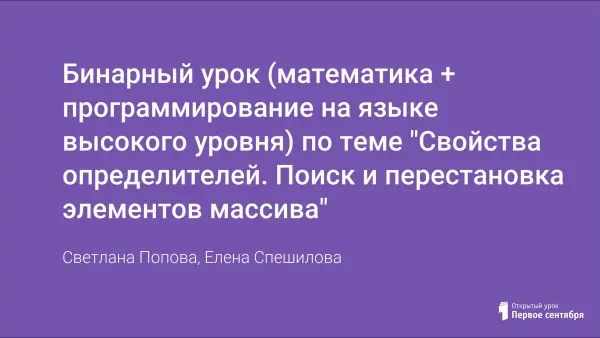 Бинарный урок (математика + программирование на языке высокого уровня) по теме "Свойства определителей. Поиск и перестановка элементов массива"