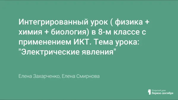 Интегрированный двухчасовой урок по теме: «Электрические явления» (физика, химия, биология) в 8-м классе с применением ИКТ.