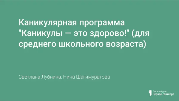 Каникулярная программа "Каникулы — это здорово!" (для среднего школьного возраста)