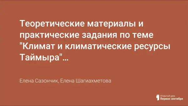Теоретические материалы и практические задания по теме "Климат и климатические ресурсы Таймыра" из учебного пособия и рабочей тетради по курсу "География Таймыра", 8-й класс