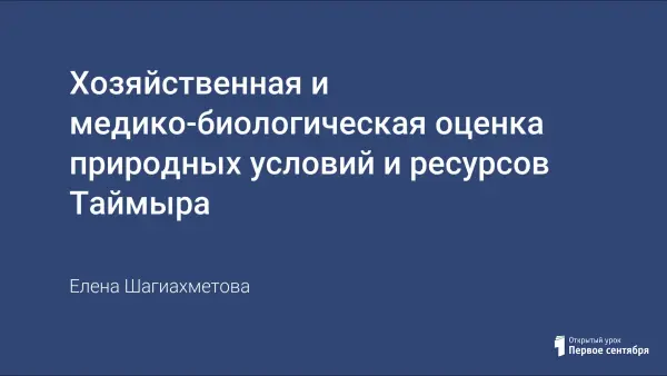 Урок является частью изучения регионального курса «География Таймыра» в 9-м классе. На первом этапе проводится практическая работа по группам, в которой ученики дают оценку природных условий и ресурсов Таймыра, их хозяйственного использования. После отчета делается общий вывод. Лекция «Влияние медико-биологических условий на жизнь человека», тезисы записываются в тетрадь. В заключение ученики самостоятельно делают выводы об условиях проживания и хозяйствования на Таймыре.