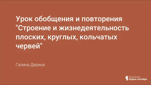 Цели урока: образовательная – обобщить знания о строении и жизнедеятельности плоских, круглых и кольчатых червей, установить их взаимосвязи со средой обитания, значение их в природе, жизни человека; воспитательная – формировать познавательный интерес к биологии; развивающая – совершенствовать умения сравнивать, устанавливать связи теории с практикой, умения пользоваться языком биологии.