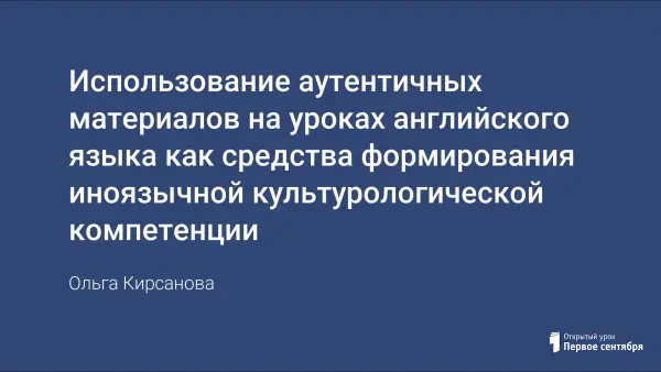 На современном этапе перед учителями английского языка ставится цель: обучение иноязычной культуре. Познание культуры стран изучаемого языка и осознание его системы возможно только при условии использования аутентичного материала. Его применение способствует повышению мотивации к изучению английского языка и формированию иноязычной культурологической компетенции учащихся.