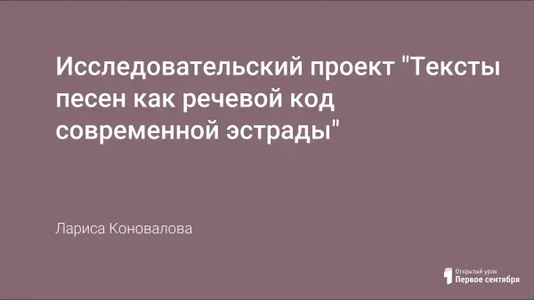 Предмет исследования: популярные эстрадные песни. Гипотеза: современные эстрадные песни не являются показателем развития русского литературного языка, а создаются авторами с нарушением языковых норм и снижают речевую культуру слушателя.