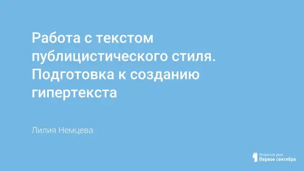 Урок русского языка в 11-м классе "Работа с текстом публицистического стиля. Подготовка к созданию гипертекста". Подготовка учащихся к сдаче экзамена по русскому языку в форме ЕГЭ. На занятии ученики научатся интерпретировать исходный текст, оценивать позицию автора, формулировать проблему, комментировать её и излагать собственное мнение по проблеме с приведением не менее двух аргументов, основанных на жизненном или читательском опыте.