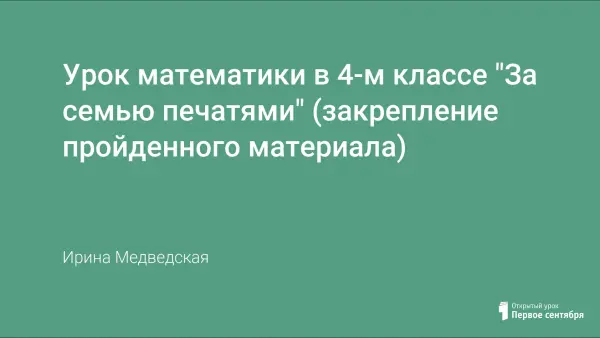 Данный урок – урок закрепления пройденного материала, проводится в четвертой четверти. Учащиеся к этому времени уже должны уметь решать задачи всех изученных видов, проводить вычисления с многозначными числами. На этом уроке повторение и закрепление изученного материала проводится в виде игры «За семью печатями», что способствует развитию познавательного интереса к математике (старинные меры длины, знаменитые математики).