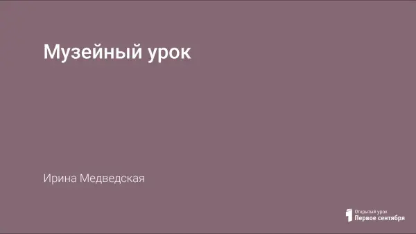 На этом музейном уроке учащиеся начальных классов знакомятся с понятиями «музей», «музейный экспонат», «подлинный экспонат», «копия», с некоторыми типами музеев. У учащихся формируется потребность и навыки общения с музеем. Урок проводится в виде презентации и заканчивается посещением краеведческого музея школы.