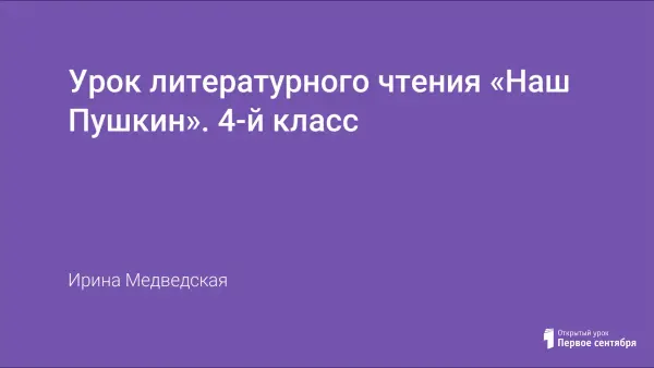 Урок литературного чтения в 4-м классе проводится в виде библиотечного урока с целью систематизации знания учащихся о жизни и творчестве А.С.Пушкина. Урок проводится с использованием методов и приемов технологии развития критического мышления и педагогики сотрудничества, создающей на уроке ситуации для триумфа личности.
