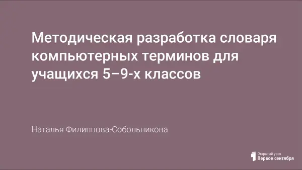 Цель: составить словарь компьютерных терминов для учащихся 5–9-х классов, с целью помочь учащимся в овладении и использовании компьютерных терминов в учебном процессе.