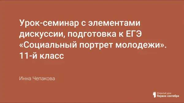 На уроке рассматриваются актуальные проблемы молодежи. Обсуждаются такие вопросы, как особенности молодежи как социальной группы, социализация молодежи и нравственные ценности, характерные для нее как для молодого поколения. Учащиеся выполняют задания ЕГЭ (части А, В, С) разного уровня сложности. Урок представляет собой синтез семинарского занятия с элементами дискуссии (анализ текстов, афоризмов о молодежи и юношестве, ценностных ориентиров и нравственных идеалов молодежи и т. д.).