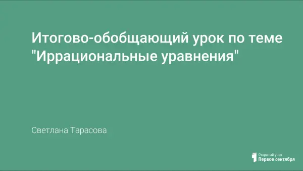При решении иррациональных уравнений учащимся важно знать алгоритм решения, поэтому на обобщающем уроке на это необходимо обратить внимание. Для устных упражнений хорошо подходит игра "Математическое лото". Закрепляя тему, разумно использовать задание "Найди ошибку". Целесообразно использовать индивидуальные задания для сильных учеников, самостоятельные работы проводить в виде тестов, составленных из заданий, аналогичных задачам ЕГЭ.