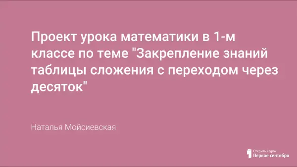 Представлен проект урока математики в 1-м классе по теме "Закрепление знаний таблицы сложения с переходом через десяток".