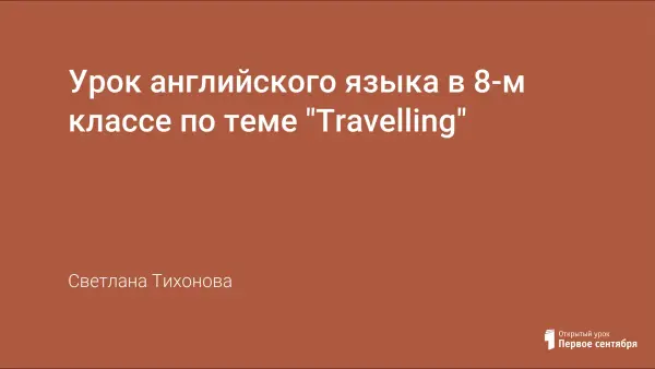 Урок по УМК Кузовлевa В.П. "Английский язык-8" продолжает тему "Путешествие". Целью урока является контроль пройденного материала, проверка знаний лексики по теме и основных видов речевой деятельности. Проверка проводится в течение всего урока в различных речевых упражнениях. Домашнее задание является логическим продолжением урока.