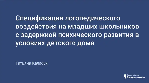 Специфика логопедического воздействия на младших школьников с задержкой психического развития в условиях детского дома.