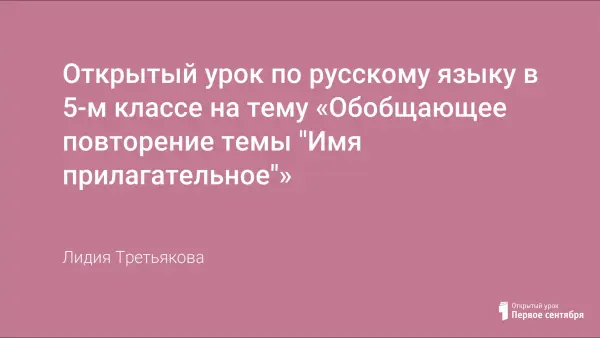 На уроке систематизируются знания по теме "Имя прилагательное". Отрабатываются навыки учащихся в различных видах разбора: морфемного, морфологического, синтаксического. Задания урока предусматривают развитие орфографической зоркости учащихся. Одной из важнейших задач урока является определение роли прилагательных в речи.