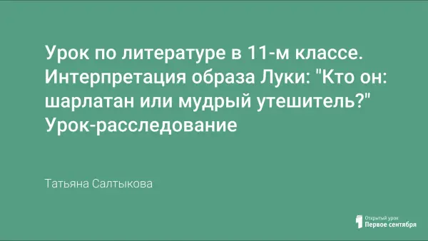 Урок по литературе в 11-м классе. Интерпретация образа Луки: "Кто он: шарлатан или мудрый утешитель?" Урок-расследование