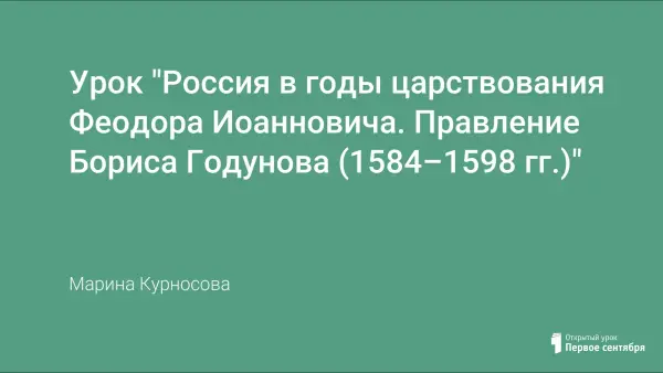 Урок истории на тему «Россия в годы царствования Федора Иоанновича. Правление Бориса Годунова (1584–1598 гг.)» предназначен для учащихся 10-х профильных классов. Тема рассматривается с использованием отрывка из работы историка С.Ф. Платонова «Борис Годунов», что позволяет полнее реализовать принцип антропоцентризма в истории, а также развить у учащихся умения и навыки работы с различными источниками информации.