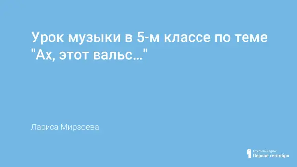 На уроке музыки в 5-м классе по теме "Ах, этот вальс..." проводится параллель между музыкой сегодняшнего дня и музыкой XIX в. на примере творчества И.Штрауса, выявляются и раскрываются характерные особенности вальса.