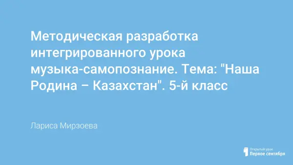 Урок является вводным при изучении раздела «Музыка казахского народа». Методическая разработка урока легко войдёт в систему календарно-тематического планирования уроков музыки в 5-х классах и даст возможность учителю увидеть панорамность изучаемого раздела. Урок обязательно поднимет настроение, разбудит патриотические чувства и не оставит школьников равнодушными.