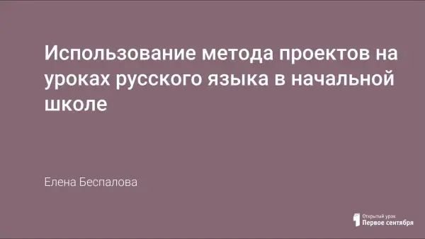 Использование метода проектов на уроках русского языка в начальной школе