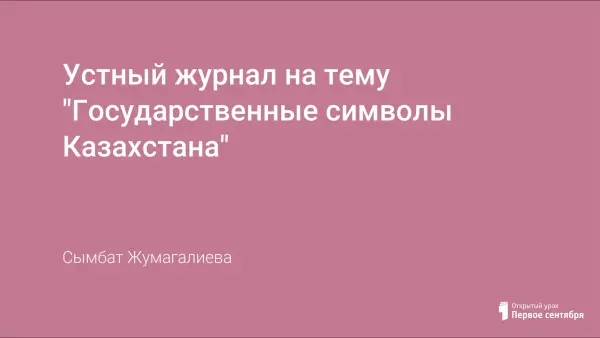 Одной из актуальных тем патриотического воспитания является тема, связанная с государственной символикой Казахстана. Вашему вниманию предлагается устный журнал "Государственная символика Казахстана".